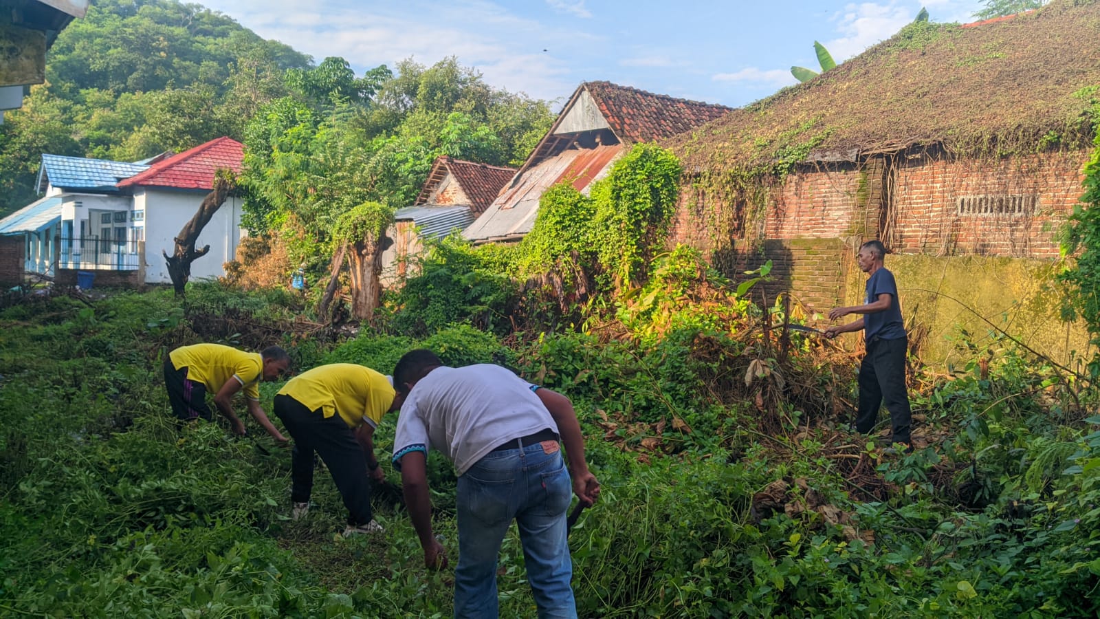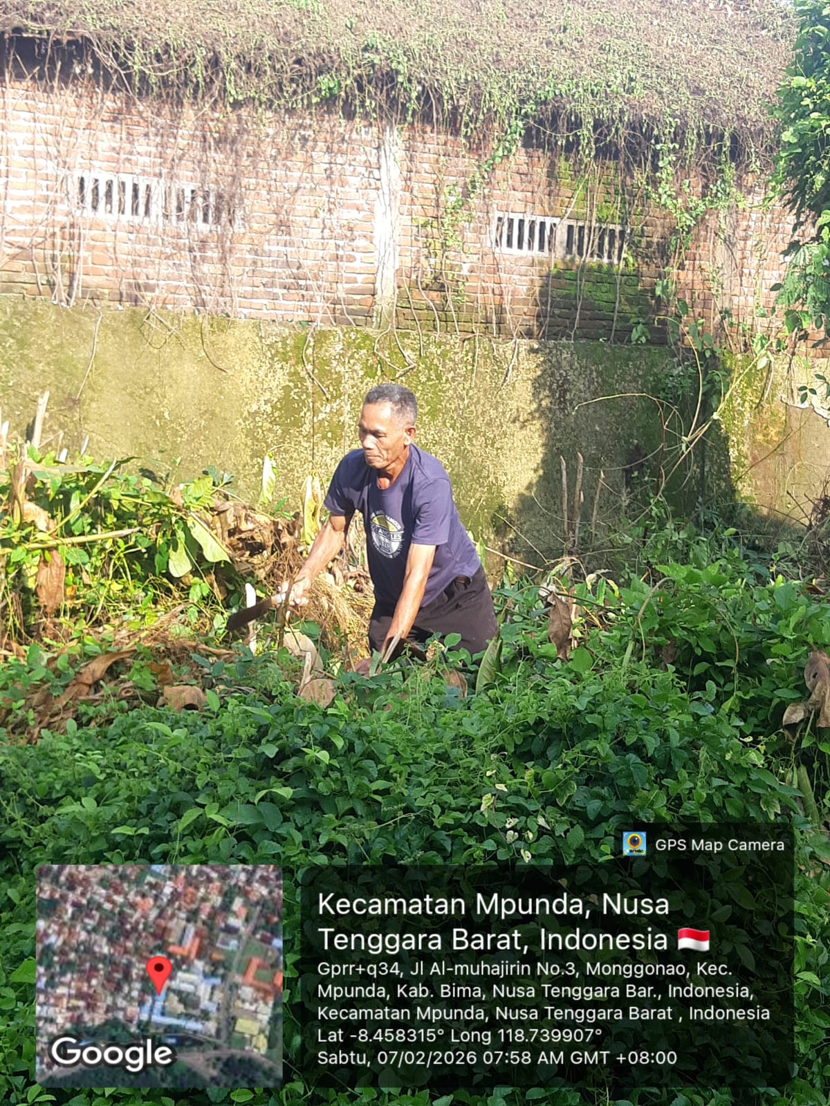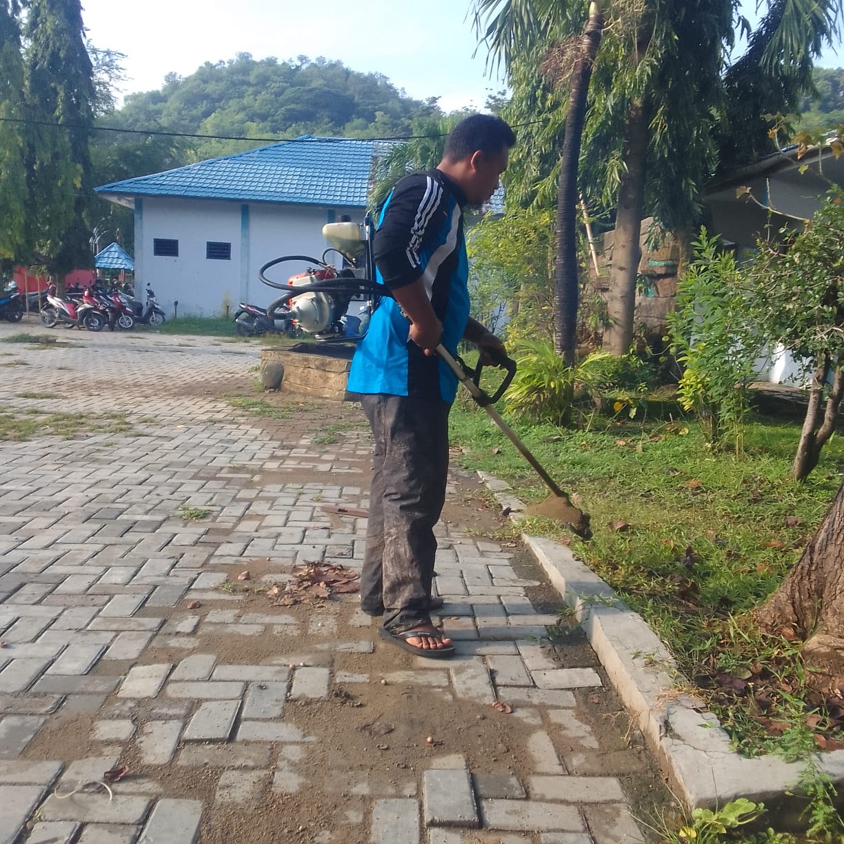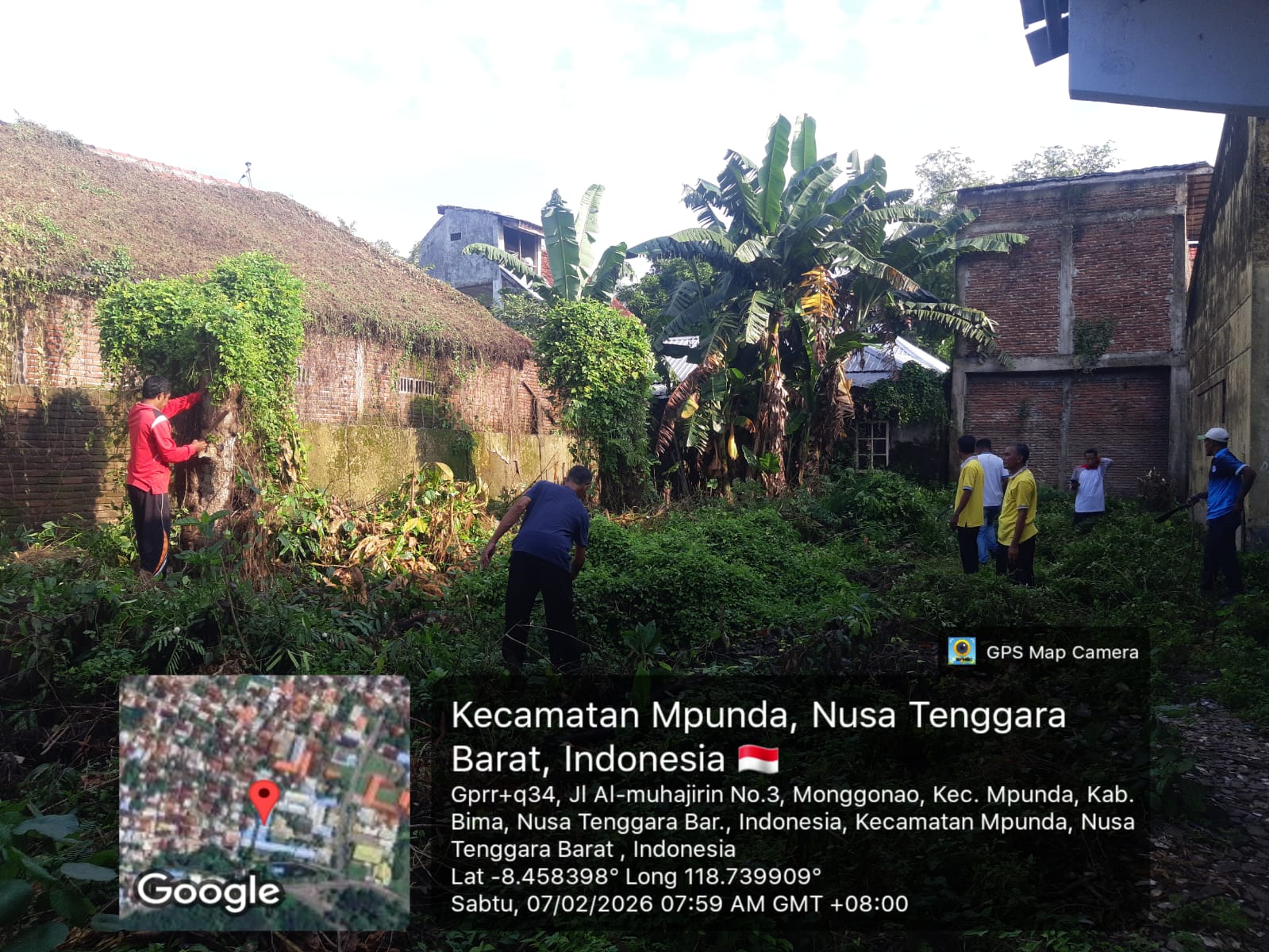 Guru dan Staff TU SMPN 6 Kota Bima Gotong Royong Bersihkan Tumbuhan Liar