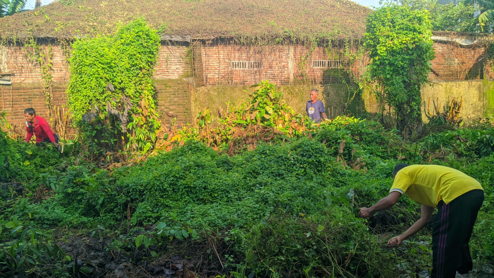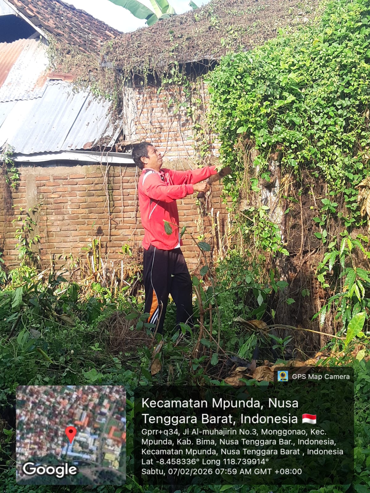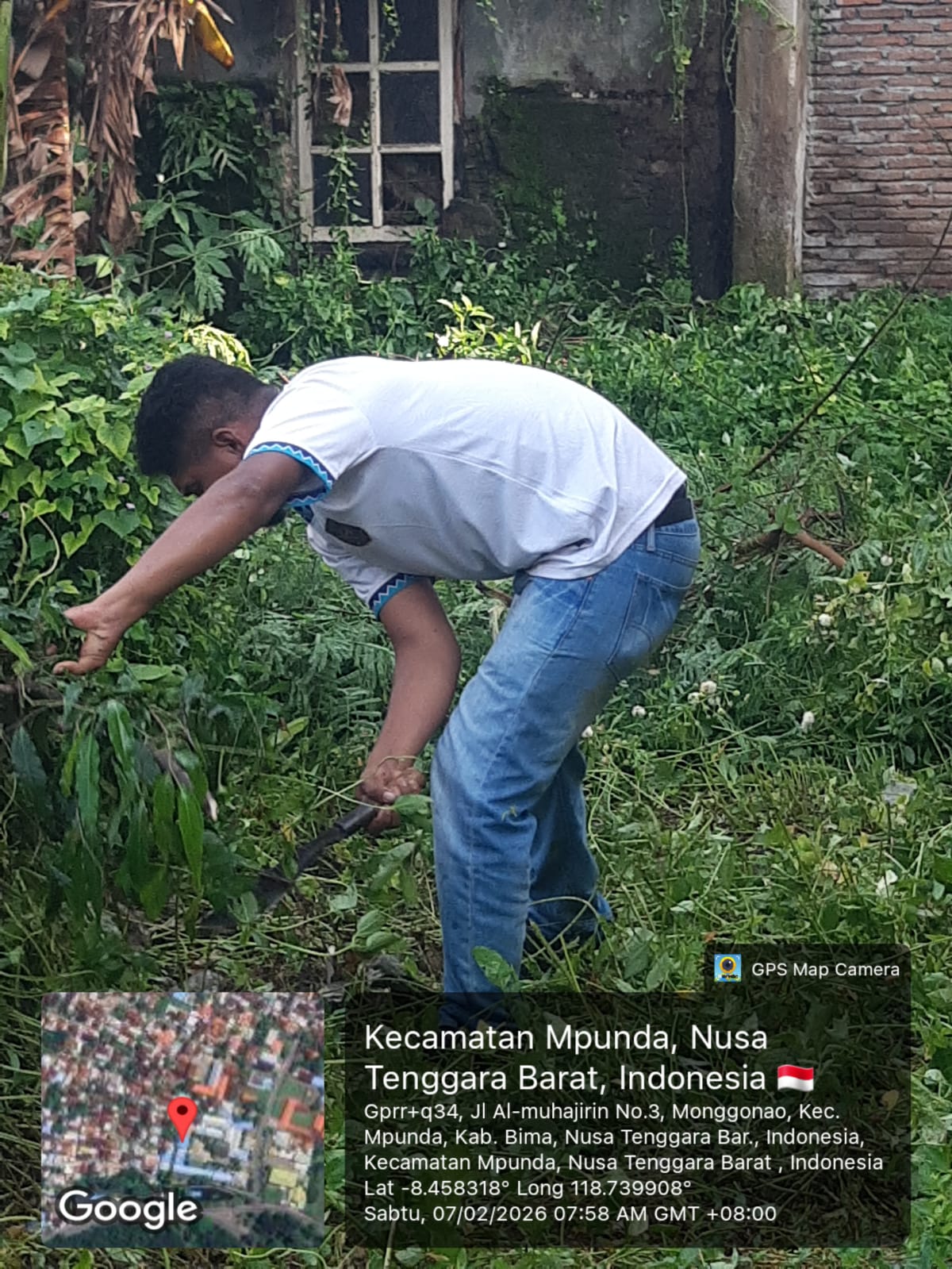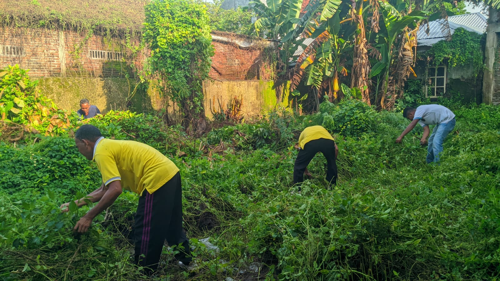 Guru dan Staff TU SMPN 6 Kota Bima Gotong Royong Bersihkan Tumbuhan Liar