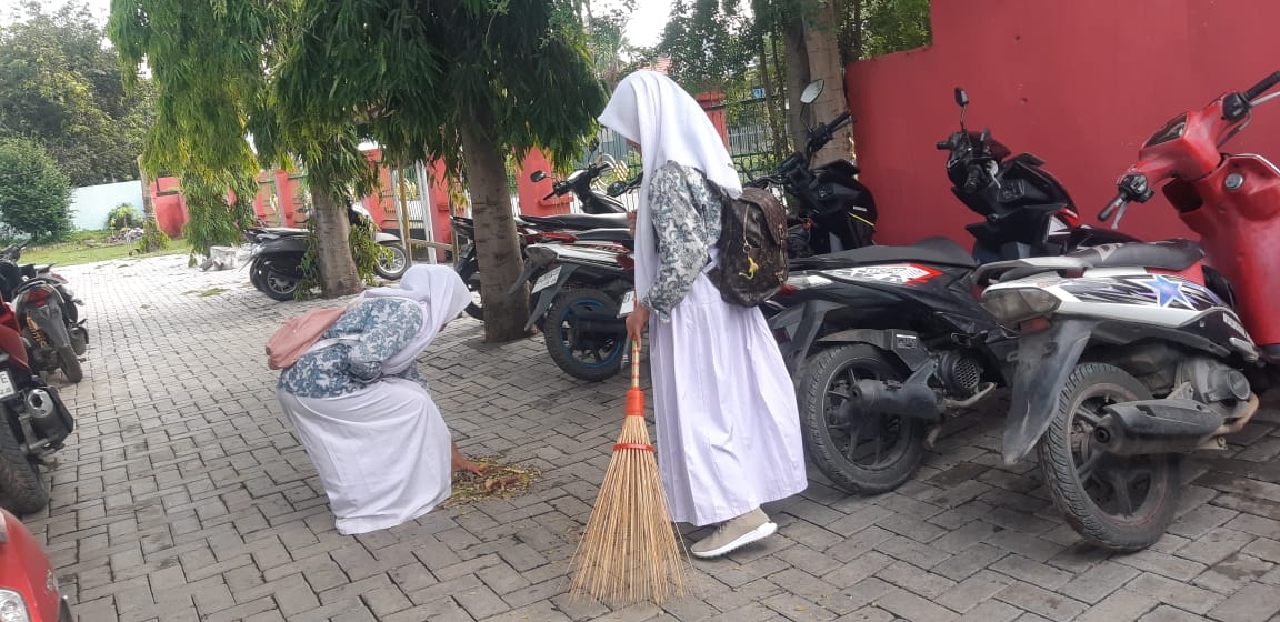 SMPN 6 Kota Bima Lakukan Aksi Kebersihan, Potong Rumput Liar di Lingkungan Sekolah
