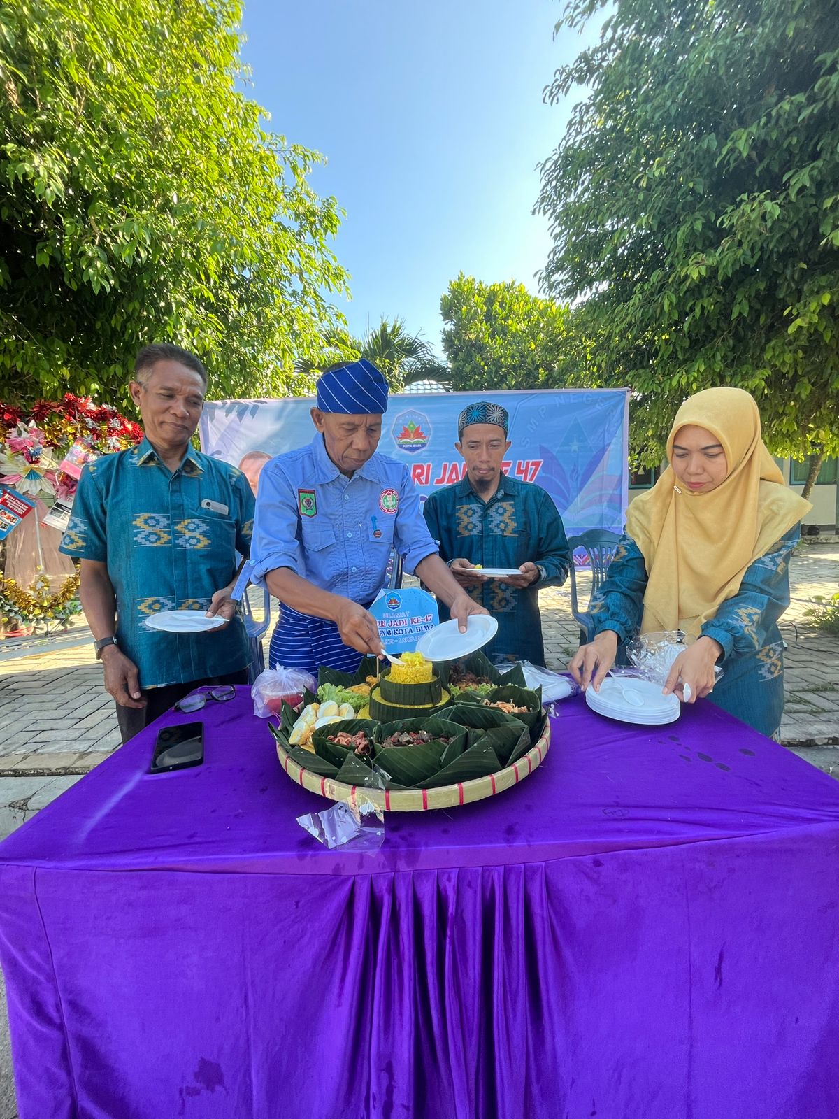 Sesi Pemotongan Tumpeng Warnai Perayaan HUT ke-47 SMPN 6 Kota Bima
